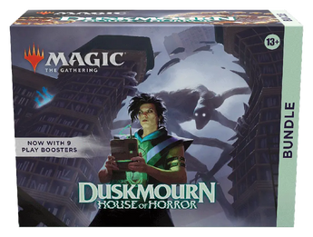 When you’re trapped in the endless halls of Duskmourn, the only way out is through. Band together with plucky survivors and battle your way to the heart of the House. This Duskmourn: House of Horror Bundle contains 9 Duskmourn: House of Horror Play Boosters, plus 1 Traditional Foil card with Bundle-exclusive alternate-art, 15 Traditional Foil and 15 nonfoil Land cards (including 5 foil and 5 nonfoil Full-Art Lands), 1 oversized Spindown life counter, 1 card storage box, and 2 reference cards. Each Play Booster contains 14 Magic: The Gathering cards, including 1–4 cards of rarity Rare or higher and at least 1 Traditional Foil card.
