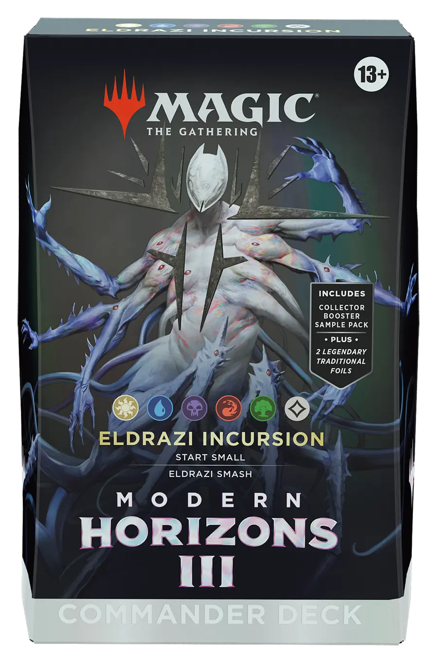 In Commander, four players come together to show their strength and strategy, with one player coming out on top. Each 100-card ready-to-play Modern Horizons 3 Commander Deck makes it easy for Commander fans in your store to grab a deck and play right away.