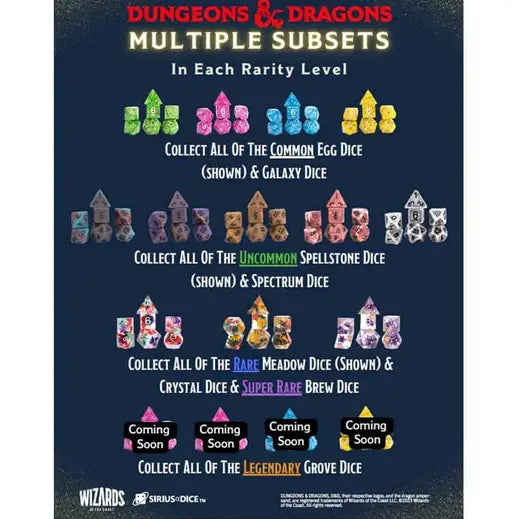 Acererak's Treasure are a blind pack item that contains many items D&D want. Each pack contains a 7 dice set, a metal coin, and a D&D dice bag.