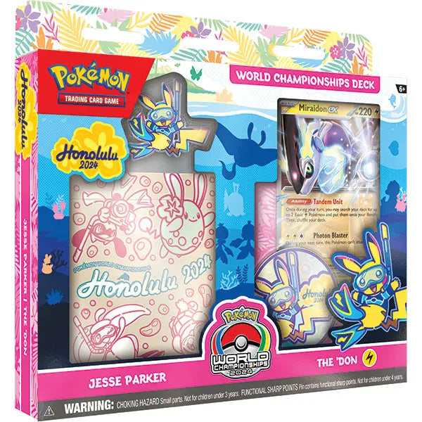 Grab a World Championships deck and play like a champion! Choose one of four powerful decks, each a card-for-card replica of an actual title-contender’s deck from the 2024 Pokémon Trading Card Game World Championships in Honolulu!