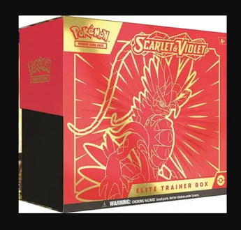 The Pokémon TCG: Scarlet & Violet Elite Trainer Box includes: • 9 Pokémon TCG: Scarlet & Violet booster packs • 1 full-art foil promo card featuring Koraidon • 65 card sleeves featuring Koraidon • 45 Pokémon TCG Energy cards • A player’s guide to the Scarlet & Violet expansion • 6 damage-counter dice • 1 competition-legal coin-flip die • 2 plastic condition markers • A collector’s box to hold everything, with 4 dividers to keep it organized • A code card for Pokémon Trading Card Game Live