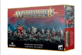 Prepare to be awed by the fearsome Soulblight Gravelords Grave Guard. These undead warriors possess a dreadful appearance that strikes fear into the hearts of their enemies. With their relentless combat skills, they are a force to be reckoned with on the battlefield. Add these formidable warriors to your collection today and let them bring a haunting presence to your tabletop battles!