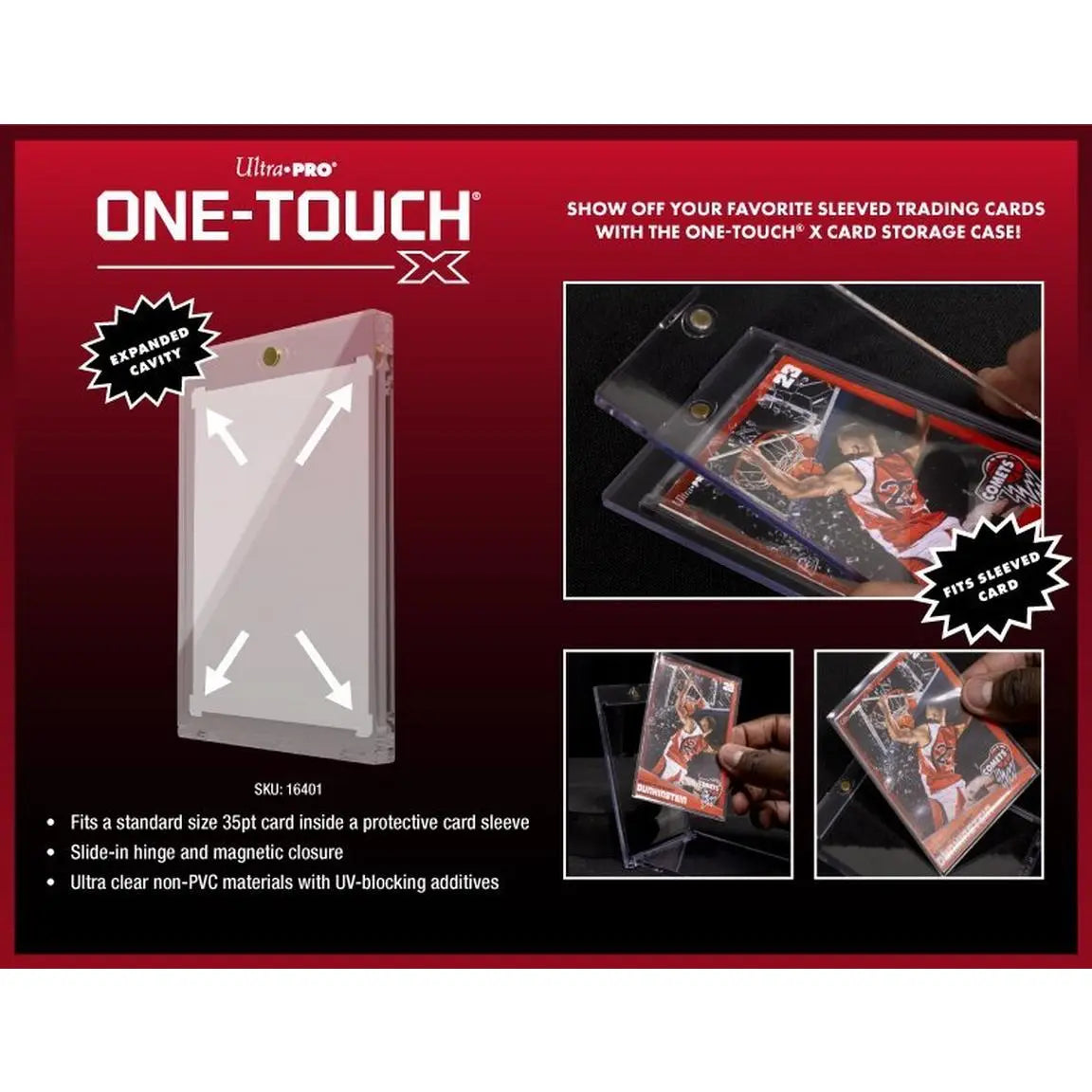 Designed as the final destination for your collectible trading cards, the ONE-TOUCH X features a bigger inner cavity to hold a standard size collectible card of 35pt in thickness inside a protective sleeve (up to Platinum Sleeve Size #15221), so you never have to remove your collectible card from its protective sleeve to display it. Every holder uses UV-blocking additives to protect cards from harmful UV-rays, and is made with non-PVC materials to provide acid-free protection - ensuring your valuable hit retains its condition while under display. For a unique way to display your favorite cards, use our ONE-TOUCH stands.
