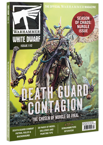 Experience the fearless Mortarion on the cover of White Dwarf 512! Immerse yourself in the thrilling new Combat Patrol for the Death Guard and gain insight into their forces. Conquer tainted battlefields with new rules and be inspired by a stunning gallery of Nurgle collections from our studio. Plus, learn expert tips to paint the perfect rust and corrosion. Embrace the bounty of corruption!