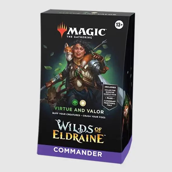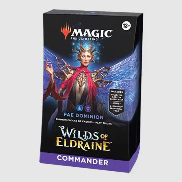 In Commander, four players come together to show their strength and strategy, with one player coming out on top. Each 100-card ready-to-play Wilds of Eldraine Commander Deck makes it easy for Commander fans in your store to grab a deck and play right away.